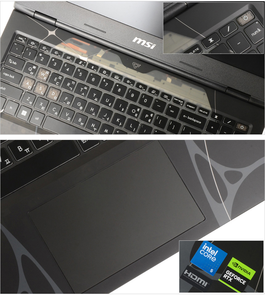 노트북의 디자인은 MSI 최고급형 라인업들과 비교해도 부족함이 없을 정도로 세련된 것을 확인할 수 있다. 노트북 테두리와 내부에 반투명 재질을 사용해 색다른 멋을 선사하며 화려한 RGB 키보드까지 적용되어 게이밍 노트북 다운 화려함도 즐길 수 있었다. (개인적으로 선호하는 디자인 이다. 엔트리급 모델이지만 보급형의 느낌을 전혀 주지 않는 모습이 아주 마음에 든다.)