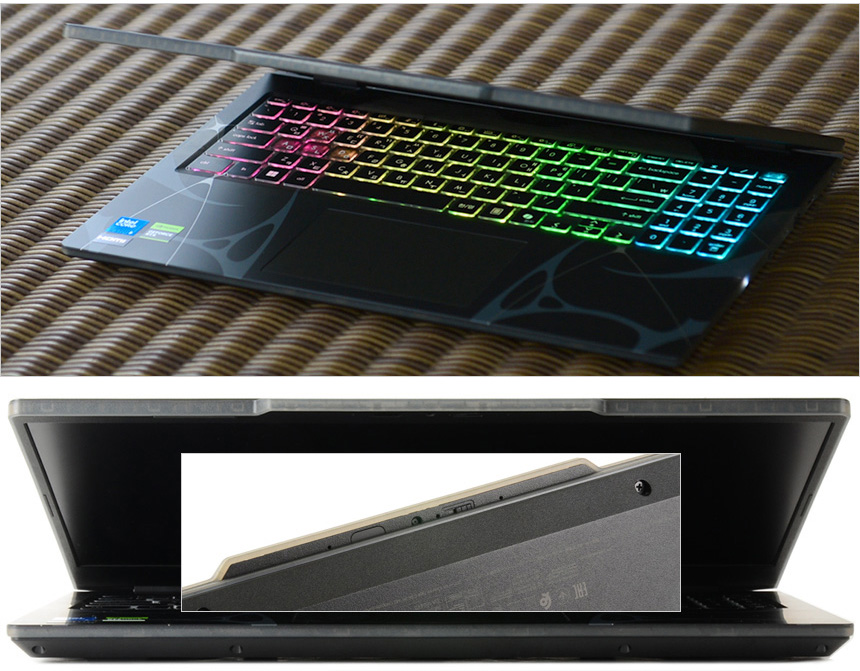 144Hz 고주사율을 지원하는 15.6형 대화면 디스플레이를 탑재해 시원시원한 영상을 즐길 수 있으며 게이밍에 특화된 4존 RGB 키보드 탑재로 아름다운 조명효과를 즐길 수 있다. 또한 일반 노트북과 달리 반투명 섀시를 적용한 미래지향적 디자인이 돋보이며 엔트리급 모델임에도 PD충전과 C타입 디스플레이 출력이 가능해 더 편하게 노트북을 사용할 수 있다.