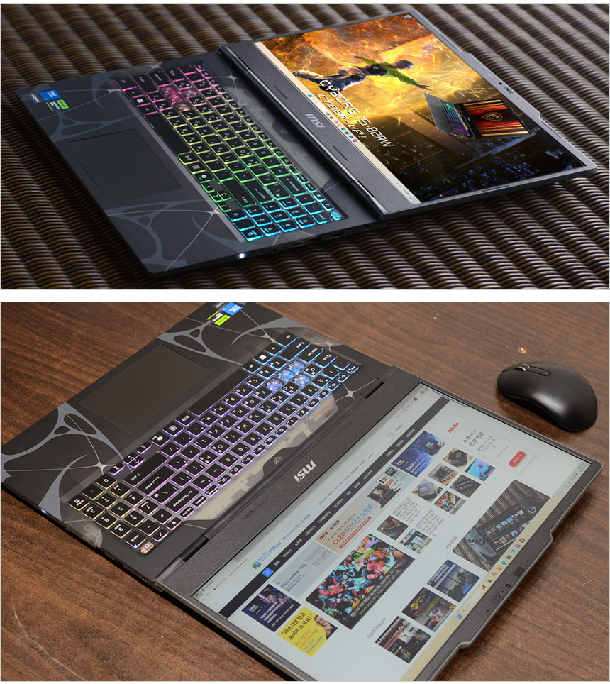 디스플레이의 각도 조절 폭이 좁은 일반 게이밍 노트북과 달리 180도 회전 디스플레이를 탑재해 미팅이나 화의실 등에서 쉽게 화면을 공유할 수 있다. 특히 화면 방향을 180도 회전시킬 수 있는 플립앤 쉐어 기술이 적용되어 (전용키 지원) 효율성을 한층 높일 수 있다. (참고로 마우스는 화면 방향대로 동작한다.)