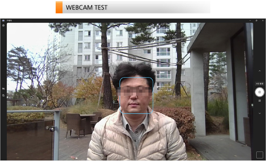 HD웹캠의 화질을 확인하고 있는 모습으로 FHD 수준의 디테일을 보여주지는 않았지만 비슷한 스펙의 경쟁모델 대비 깨끗한 영상을 보여주었다. 화상회의나 셀프촬영 등의 용도로 충분히 사용할 수 있을 것이다.