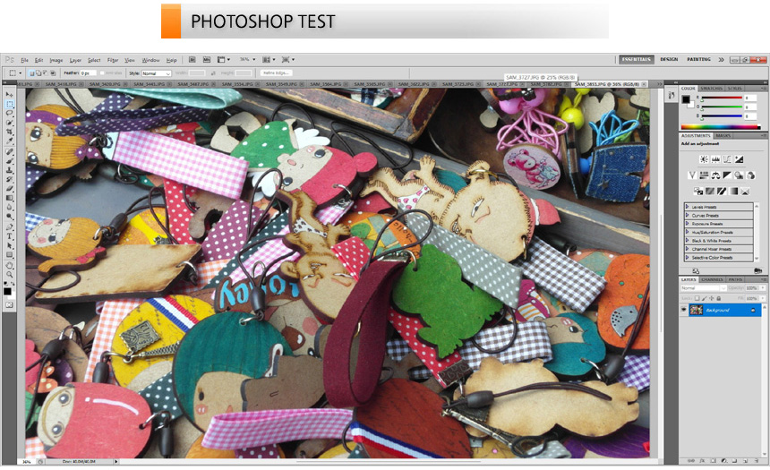 포토샵을 이용해 사전편집 테스트를 진행하고 있는 모습으로 게이밍 노트북 답게 원본 JPG 파일을 부드럽게 편집할 수 있었다. 사진편집은 물론 웹 디자인이나 기타 전문작업 용으로 활용할 수 있다. (단, 메모리는 테스트 제품처럼 16GB 이상으로 구성하는 것을 권장한다.) @ 총 46장의 원본 사진 (총 180MB) 을 로딩하는데 걸리는 시간을 측정했는데 20초가 소요되었다.