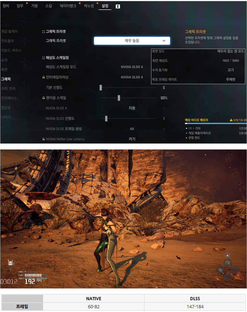 스텔라 블레이드를 플레이 하고 있는 모습으로 DLSS를 적용하면 프레임이 대폭 향상되어 부드럽게 게임을 즐길 수 있다.