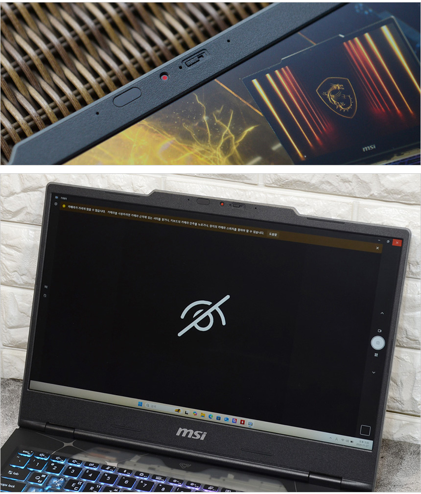 웹캠을 이용한 비주얼 해킹이나 사생활 옅보기를 원천적으로 차단할 수 있도록 카메라에 프라이버시 셔터가 장착했다. 물리적으로 카메라를 가려주기 때문에 해킹으로 노트북 권한을 획득 하더라도 사용자나 주변 상황을 전혀 볼수 없다. (동영상을 통해 자세히 확인하기 바란다.)