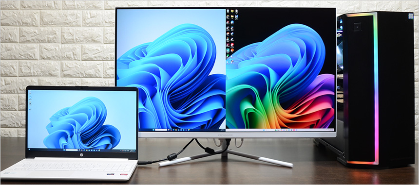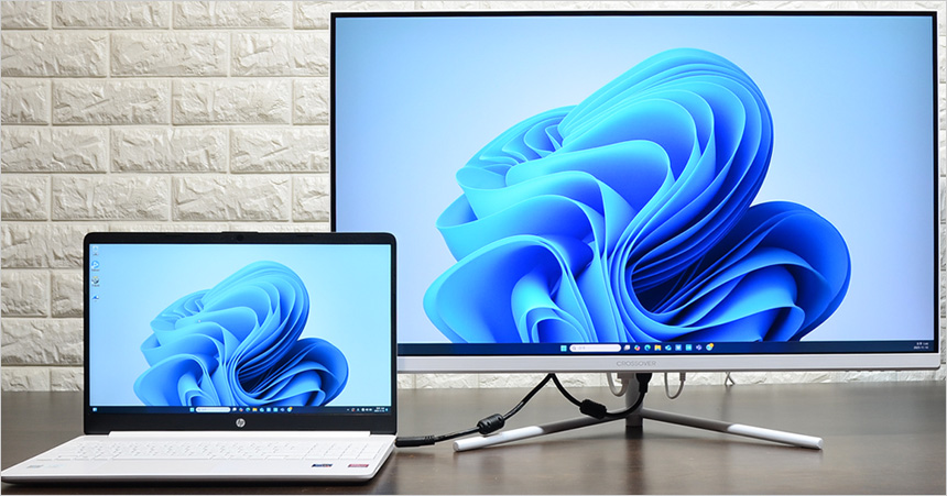 HDMI 단자를 지원해 노트북과 연결해 대화면을 통한 효율적인 멀티테스킹이 가능하다. 상단에서 확인한 것과 같이 3개 이상의 창을 띄어둘 수 있어 노트북 에서도 데스크탑 PC 수준의 작업이 가능하다. 또한 최근 많은 유저들이 사용하고 있는 게이밍 UMPC와 연결해 대화면으로 게임을 플레이 할 수 있다.