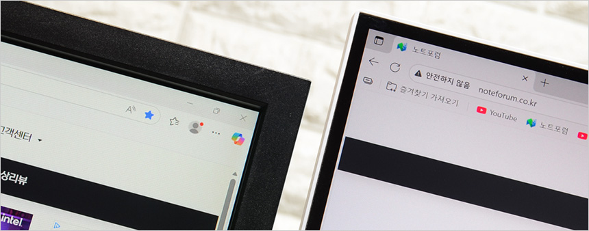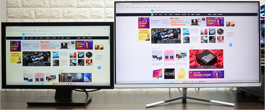 플리커 프리 테스트를 하는 김에 두 제품의 베젤 두께를 비교해 보았는데 확연한 차이가 발생하는 것을 확인할 수 있었다. 두꺼운 베젤로 인한 거슬림 없이 영상에 몰입하고 싶다면 좋은 선택이 될 것이다.