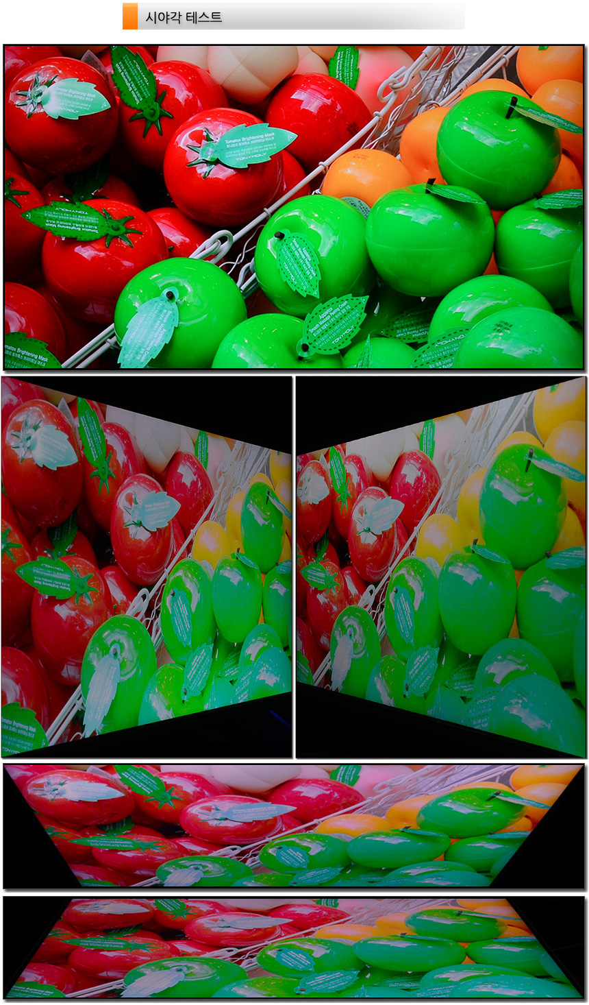 VA 모듈 패널을 사용한 제품으로 IPS 대비 극단적인 각도에서 선명도가 약간 떨어지는 것을 확인할 수 있었다. (전체적인 시야각은 보급형 모델대비 상당히 양호했다.) 하지만 정면에서는 최상급 모델들과 비교해도 손색없는 높은 선명도를 보여주었다.