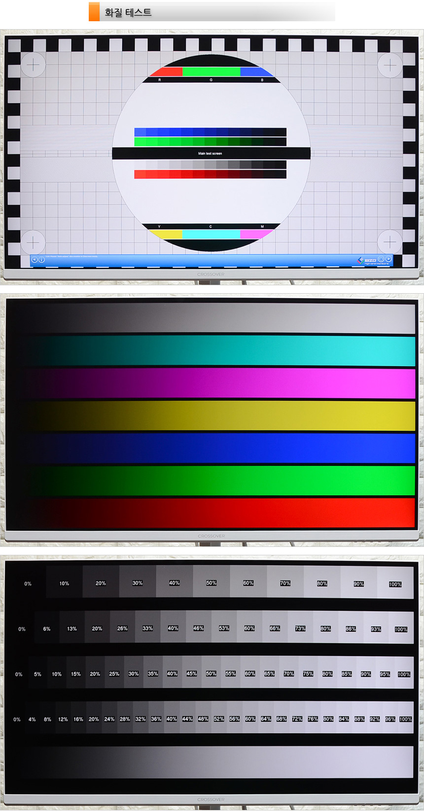 스마트폰 카메라 기능을 이용하면 모니터의 플리커 현상을 확인할 수 있다. (프로 모드에서 셔터스피드 1/300 이상으로 셋팅) 테스트용 모니터는 플리커 현상이 발생하는데 반해 크로스오버 32UAW9 에서는 깜빡임 없이 영상을 재생했다. (동영상을 통해 자세히 확인하기 바란다.)
