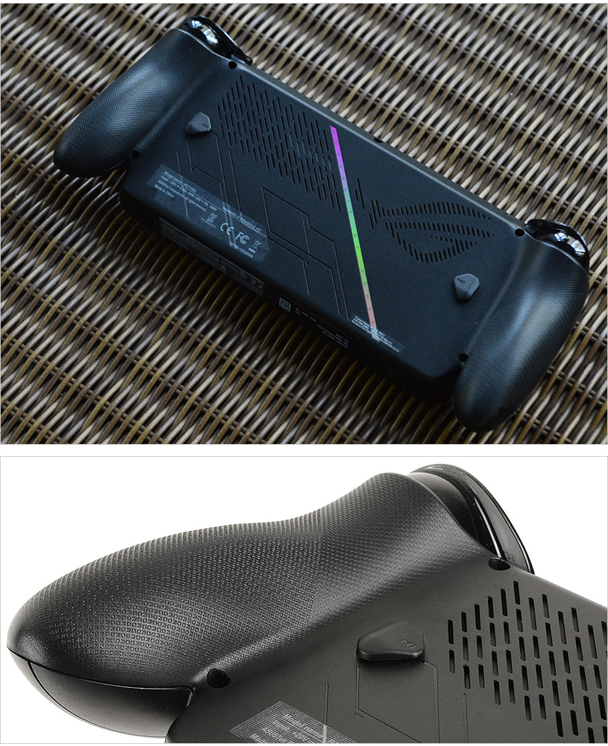 기기 상단부의 모습으로 열이 발산되는 통풍구가 설치되어 있고 양 측면에는 범퍼와 트리커가 설치되어 게임에서 활용할 수 있다. (인체공학적 설계로 편하게 누를 수 있었다.) 전원버튼에는 지문인식 센서를 추가해 보안성을 높였으며 헤드셋이나 이어폰 연결을 위한 오디오 (COMBO) 단자와 저장용량을 늘릴 수 있도록 microSD 카드리더를 제공한다. 또한 2개의 C타입 단자를 지원하며 (USB 4 & USB 3.2 Gen2) LED를 장착해 작동상황을 손쉽게 파악할 수 있다.