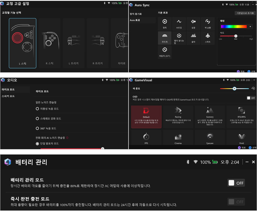 교정 기능을 제공해 보다 정확한 조작이 가능하며 아우라 싱크를 지원해 주변기기와 조명을 동기화 할 수 있다. (다양한 조명효과를 지원하며 속도와 밝기 등도 조정할 수 있다.) 또한 노이즈 캔슬링 지원으로 깔끔한 음성전달이 가능하며 게임 비주얼 지원으로 사용자에 맞게 디스플레이를 셋팅할 수 있다.