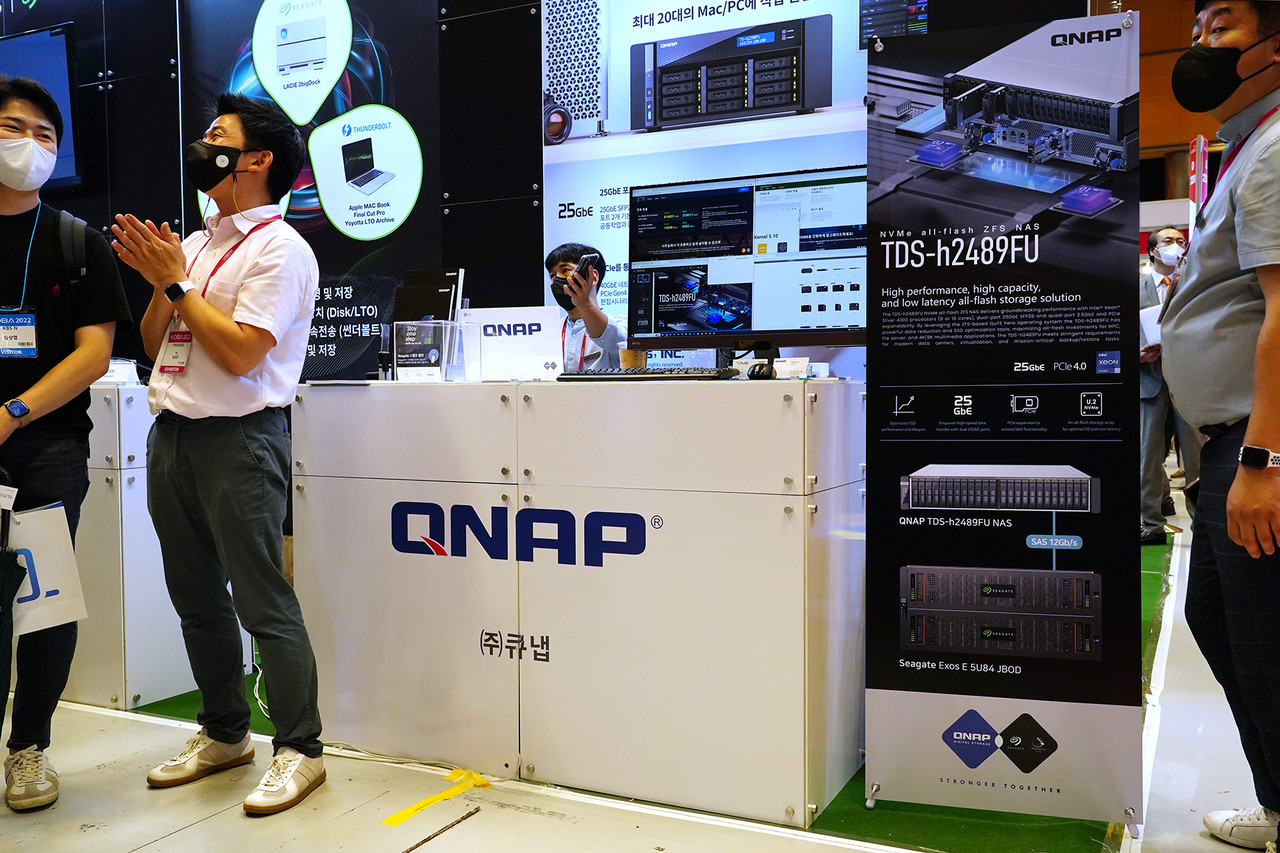 QNAP의 QuTS hero 운영체계는 씨게이트 EXOS E 확장스토리지와 U.2 SSD와 함께 최상의 성능과 고객만족을 보장한다. 참고로 1인 미디어와 소규모 협업환경을 위한 세계 최초 썬더볼트4 탑재 NAS도 2개 제품군 5개 모델로 함께 선보였다.