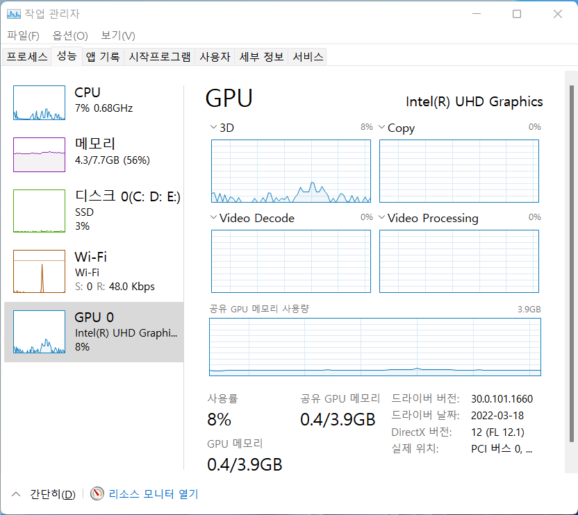 그래픽 : 인텔 UHD 그래픽스