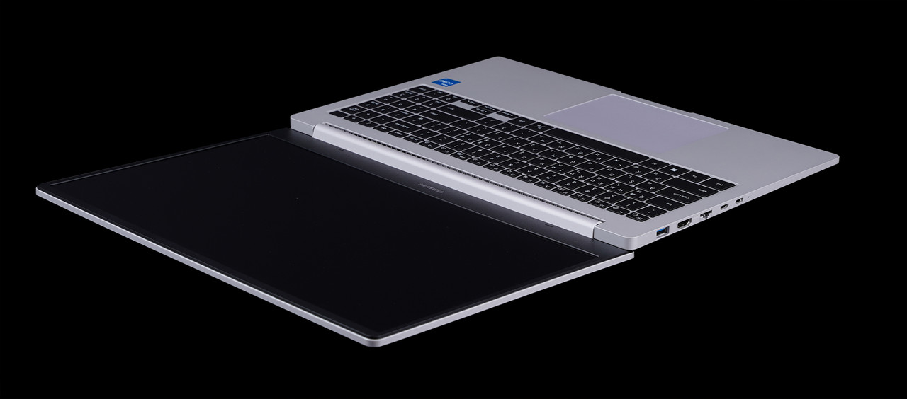 간단하게 표현하자면 더 얇고 깔끔해 보일 수 있게 좋은 방향으로 디자인이 바뀌었다. 포트 구성도 바뀌었고 하단부 통풍구도 조금 변했다. 디자인 변화만 두고 보면 갤럭시북 2라는 이름이 붙은 게 이상하지 않다. 베젤도 슬림 베젤이라 화면에 몰입이 잘 된다.