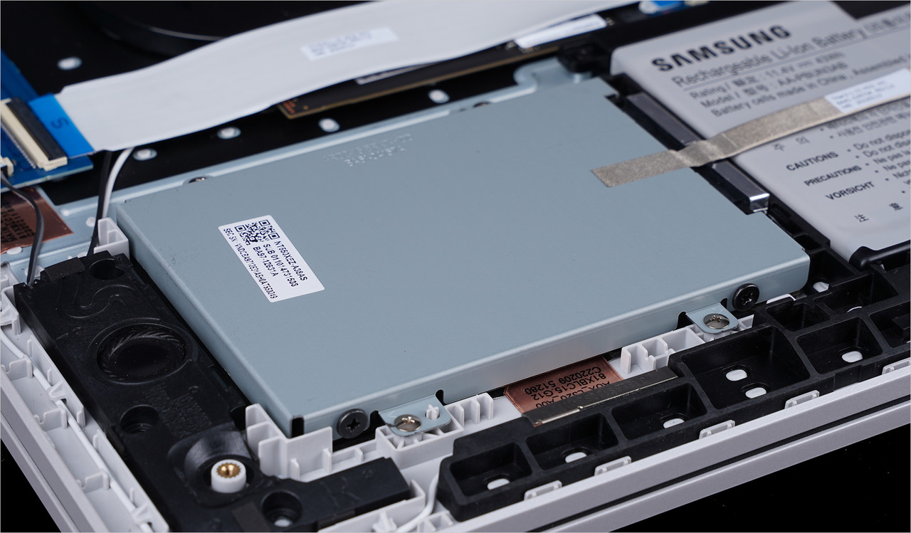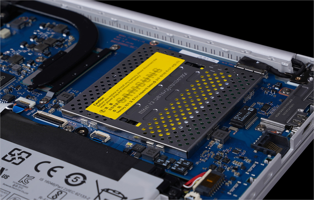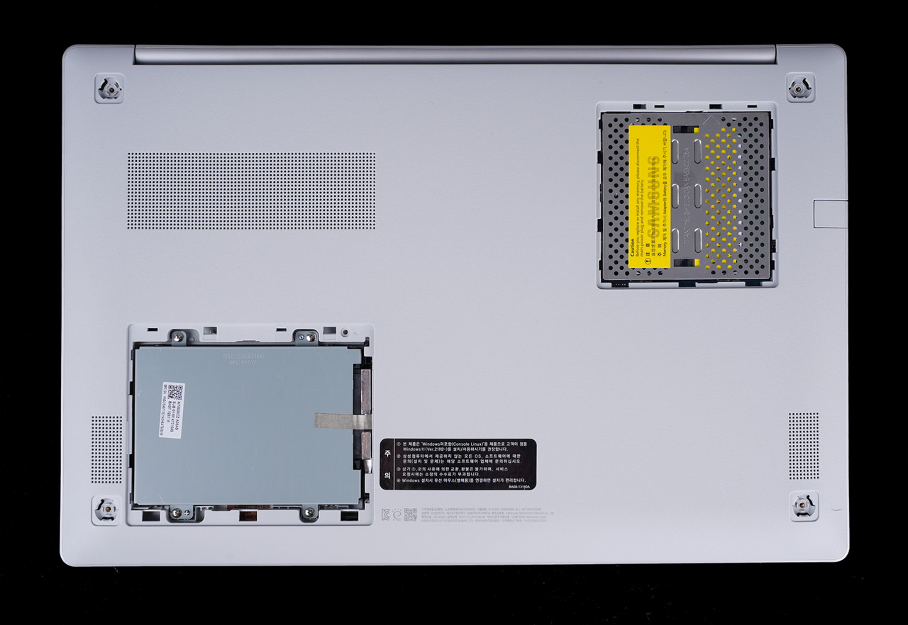 업그레이드는 갤럭시북2 제품군 중 가장 쉽다. 노트북 하판에는 메모리, 하드디스크 슬롯을 바로 확인할 수 있다. 해당 슬롯을 탈거한 후 메모리나 하드디스크를 추가할 수 있다.