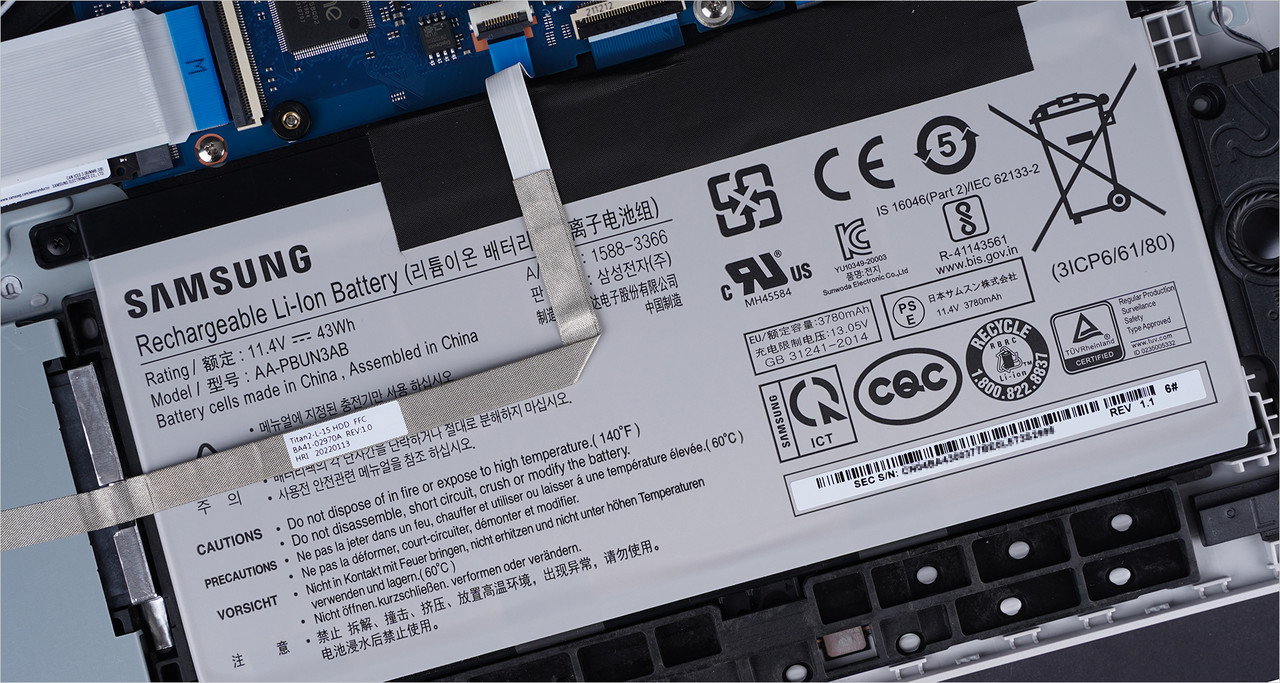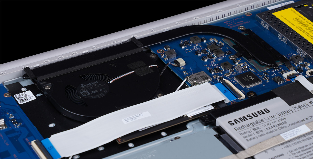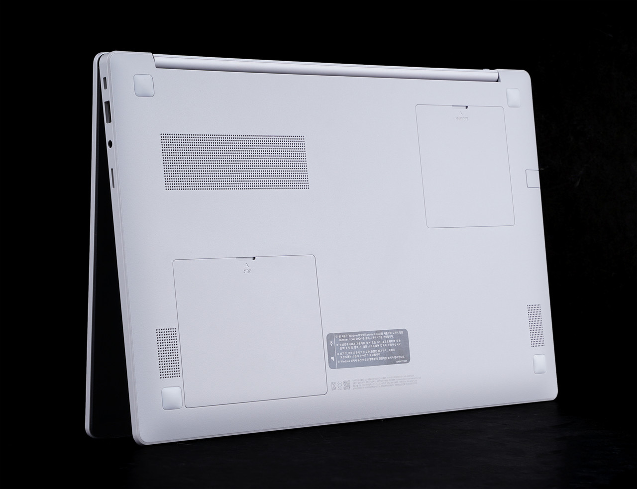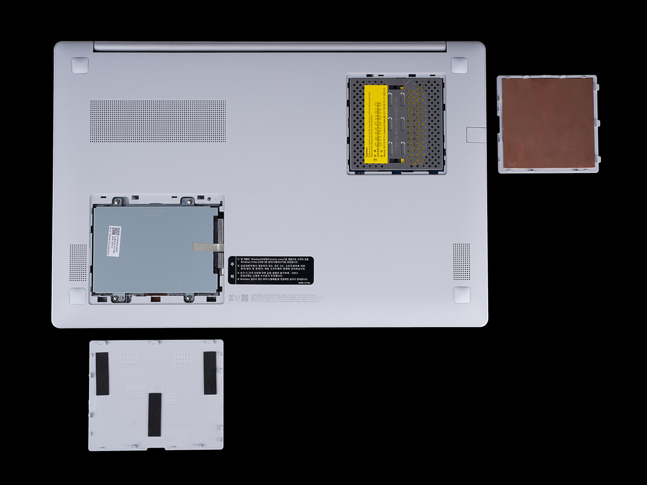 업그레이드는 갤럭시북2 제품군 중 가장 쉽다. 노트북 하판에는 메모리, 하드디스크 슬롯을 바로 확인할 수 있다. 해당 슬롯을 탈거한 후 메모리나 하드디스크를 추가할 수 있다.