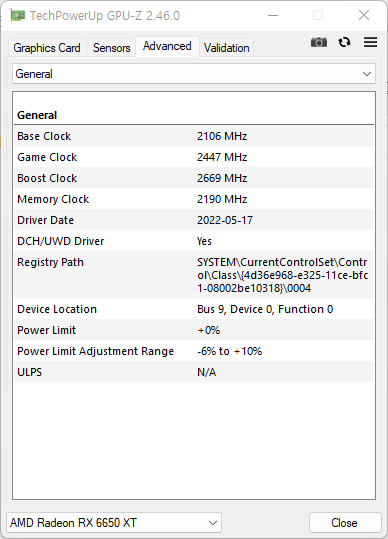라데온 RX 6650 XT는 ‘ASUS DUAL 라데온 RX 6650 XT O8G OC D6 8GB 대원CTS’로 테스트했다. 부스트클럭 2689MHz로 레퍼런스 부스트 클럭인 2635MHz보다 조금 더 높다. 참고로 Adrenalin 22.5.2 Optional (WHQL)을 설치한 상태다.