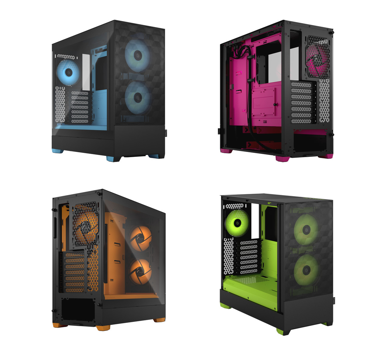 한편 팝 시리즈 케이스는 프렉탈디자인의 기존 케이스 제품들과 달리 블랙 · 화이트 등 무채색 뿐만 아니라 시안(청록색) · 마젠타(자홍색) · 오렌지 · 그린 등 다양한 색상의 제품들이 존재한다. 이 네 가지 모델은 제품명 뒤에 'Core'라는 명칭이 붙는다.