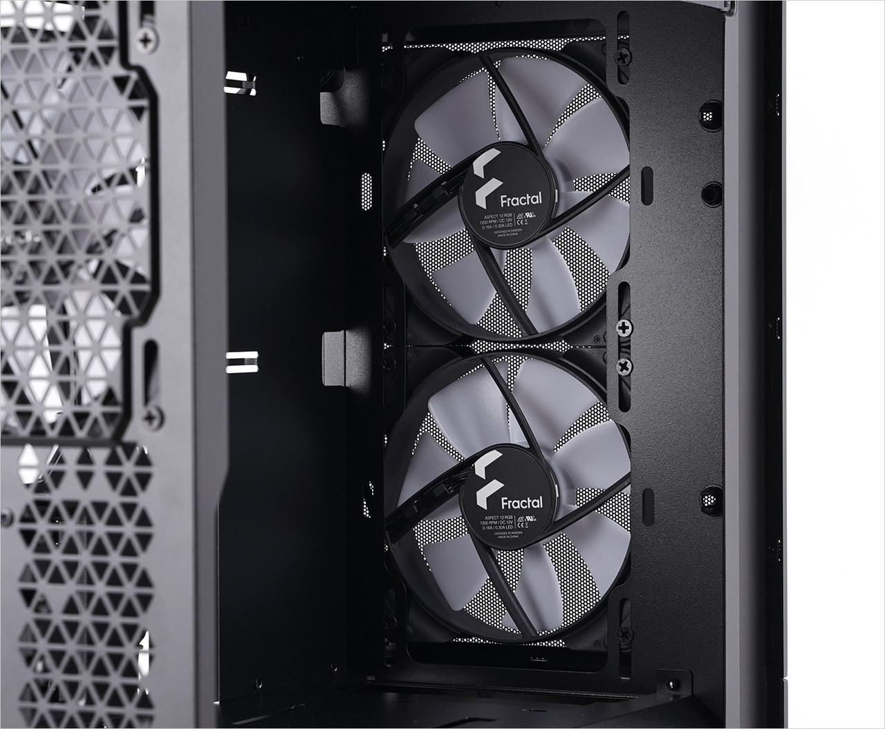 쿨링 팬은 ‘Aspect 12 RGB’이고 최대 속도는 1200RPM(분당회전수)이다. 기본 장착된 쿨링 팬 2개를 분리하고 140mm 규격 쿨링 팬 1개를 장착하는 것도 가능하다.