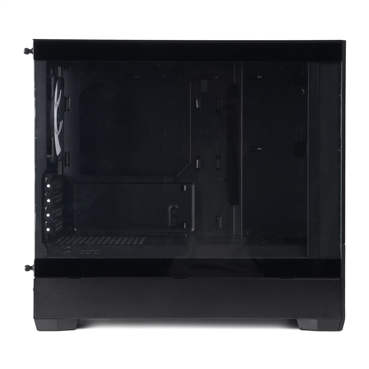 측면 패널은 강화유리 재질이어서 케이스 내부가 훤히 들여다 보인다. 팝 미니 에어 RGB 클리어는 기본 장착된 쿨링 팬 3개에 RGB LED가 내장되었는데, PC 전원이 켜지면 화사하게 빛나므로 튜닝 효과를 체감하기도 좋다.
