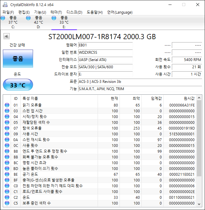 가격은 2022년 6월 14일 가격비교사이트 최저가 기준으로 2TB가 123,000원이다. 참고로 파이어쿠다 게이밍 HDD 데이터복구 2TB는 같은 기준으로 104,900원이다. 두 제품의 가격 차이는 18,100원이며 취향에 따라 선택하면 된다.