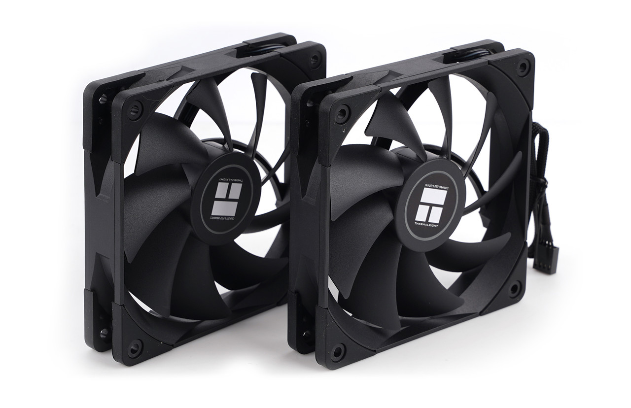 PA120 블랙에는 서멀라이트의 ‘TL-C12-B’ 쿨링 팬이 2개 제공된다. 120mm 규격이고 날개 9개가 1500RPM(분당 회전수)으로 작동해 바람을 일으킨다. 풍량은 최대 66.17CFM(분당 큐빅피트)이고 풍압은 최대 1.53mm H2O(수주 밀리미터)이다.