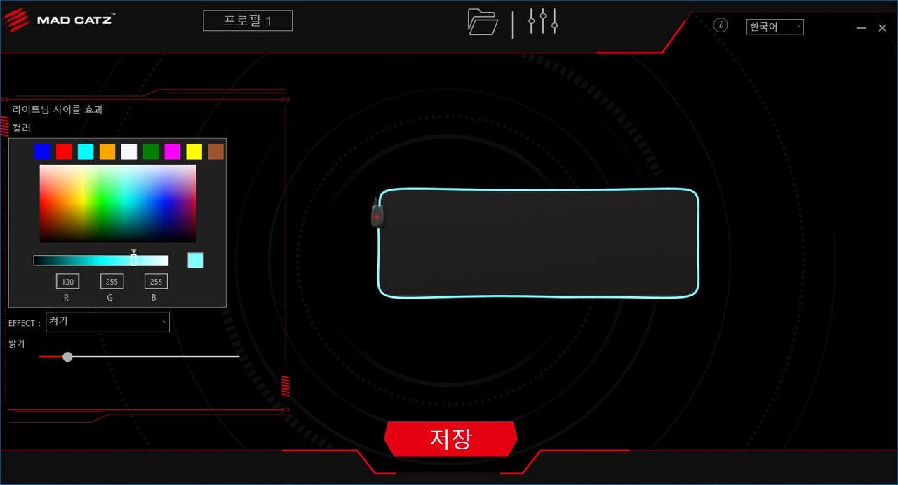 RGB LED 조명 효과나 색상을 바꾸고 싶다면 전용 소프트웨어를 이용해서 설정을 하면 된다. 전용 소프트웨어는 매드캣츠 홈페이지에서 다운로드할 수 있다.