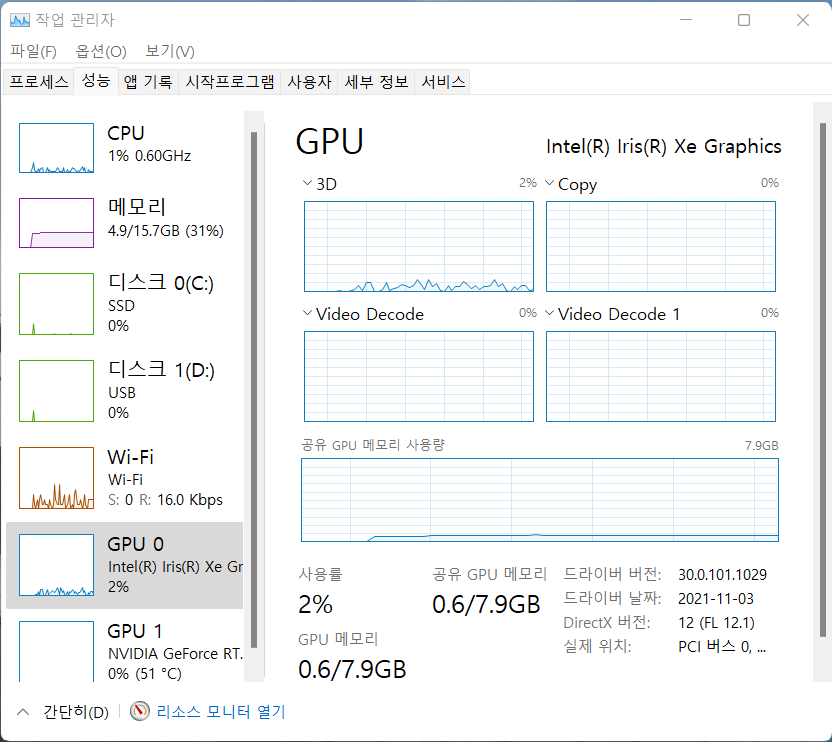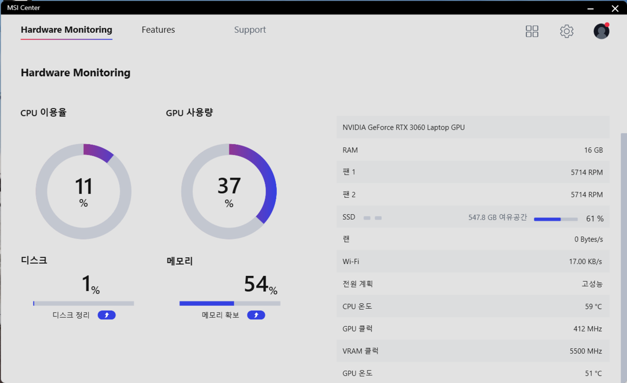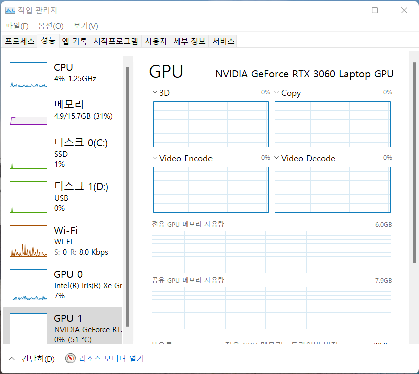 그래픽 : 엔비디아 지포스 RTX 3060 Laptop GPU GDDR6 6GB(75W 맥시멈 그래픽 파워 with 다이나믹 부스트)