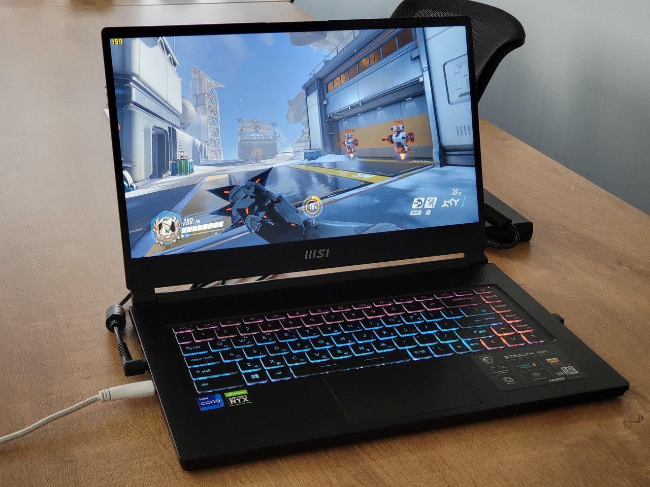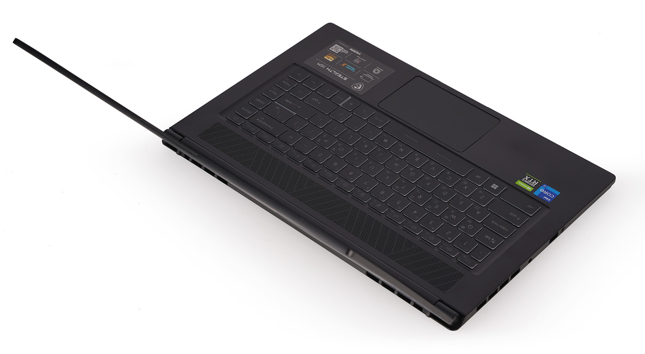 스텔스 15M B12UE는 전형적인 게이밍 노트북과는 달리 비즈니스 노트북처럼 비교적 단정하게 보인다. 두께도 17mm 정도다. 기존 게이밍 노트북과 비교하면 아주 얇다. 그러면서 무게도 1.8kg에 불과하다. 게이밍 노트북 중에서는 휴대성이 가장 뛰어난 편이다.