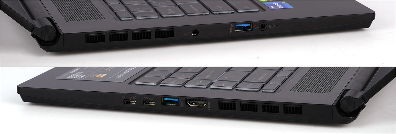 연결 포트는 USB 3.2 Gen2 Type-C x1(디스플레이 출력 지원), USB 3.2 Gen2 Type-C x1, USB 3.2 Gen1 Type-A x2, HDMI x1(4K@60Hz) 구성이다. 무게는 1.8kg으로 게이밍 노트북 중에서는 가벼운 편이다.