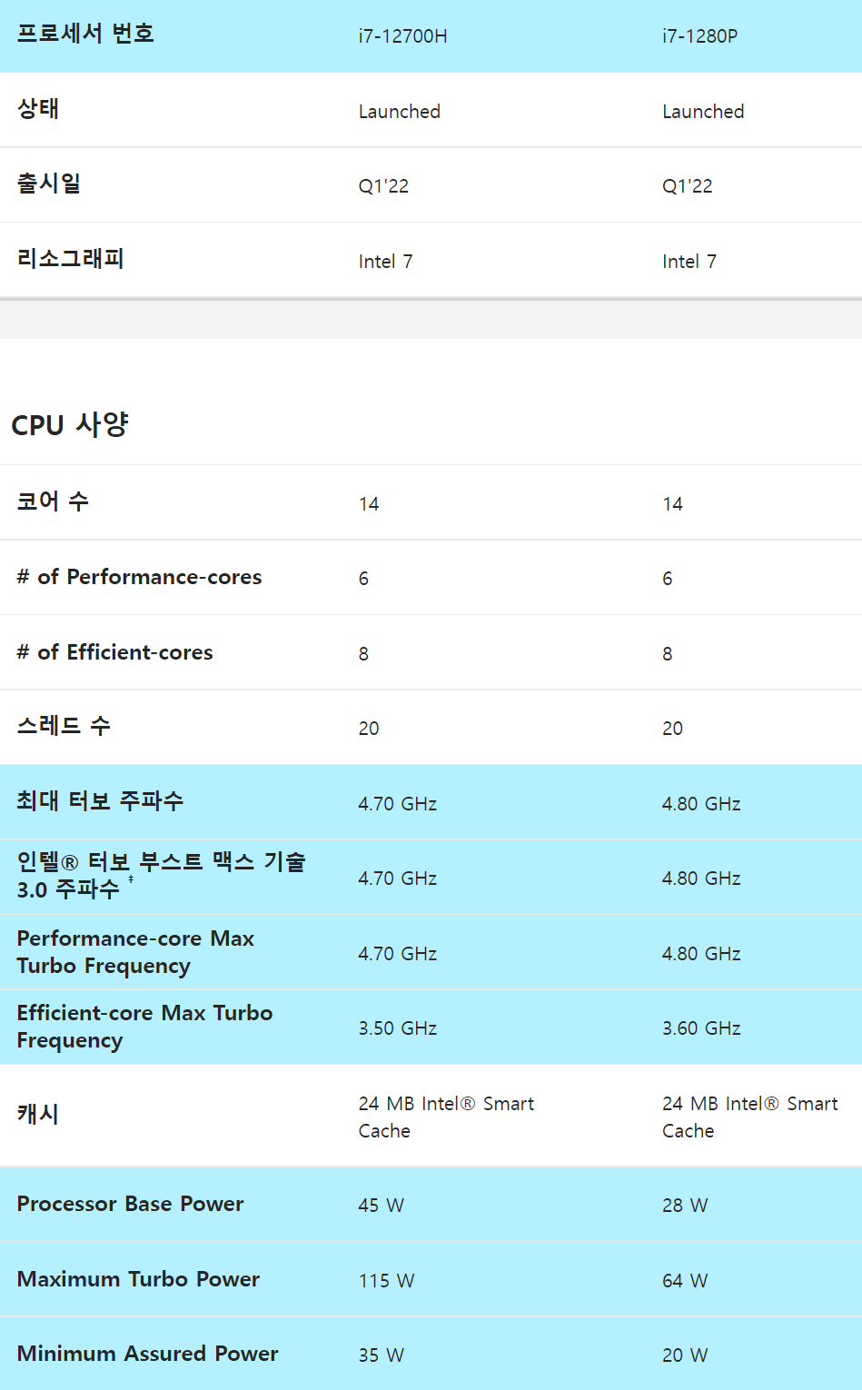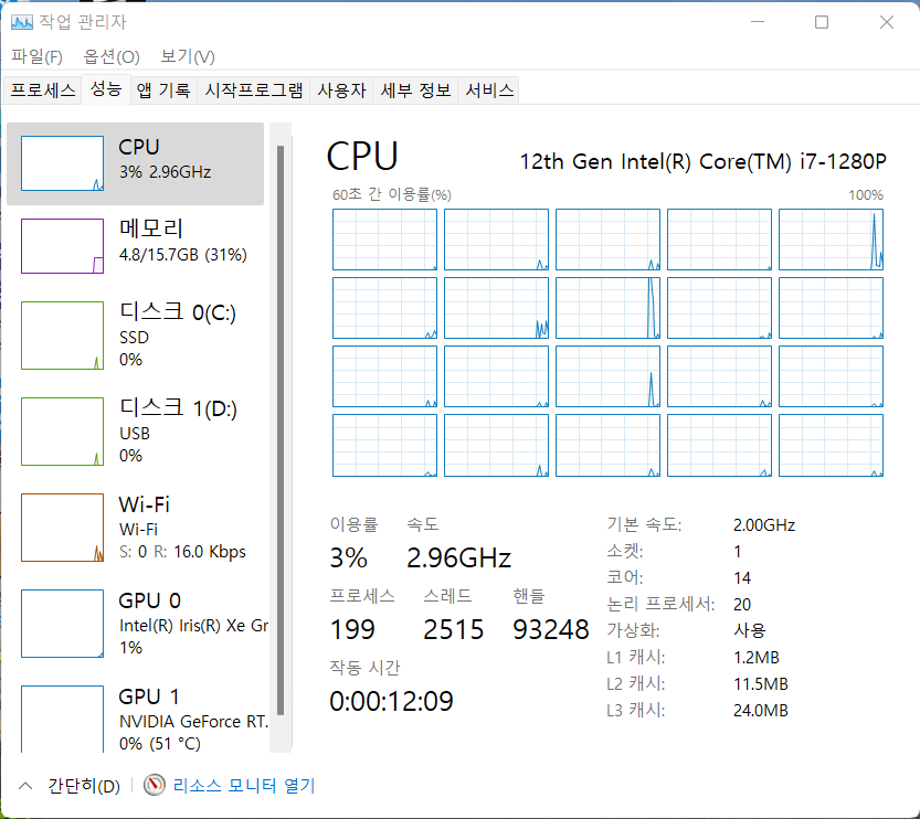 CPU : 인텔 코어 i7-1280P