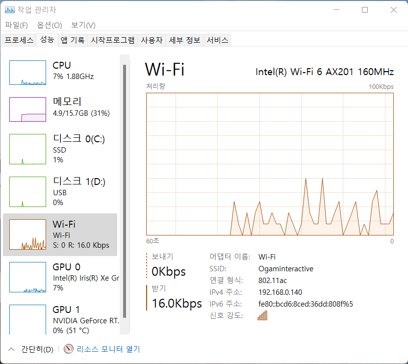 무선랜은 Wi-Fi 6(802.11ax)이 지원된다. 블루투스는 v5.2다. 무선이지만 빠른 속도로 사용할 수 있다. 저장장치는 NVMe M.2 SSD 512GB 구성으로 게임 로딩 시 체감 속도가 빠르다.
