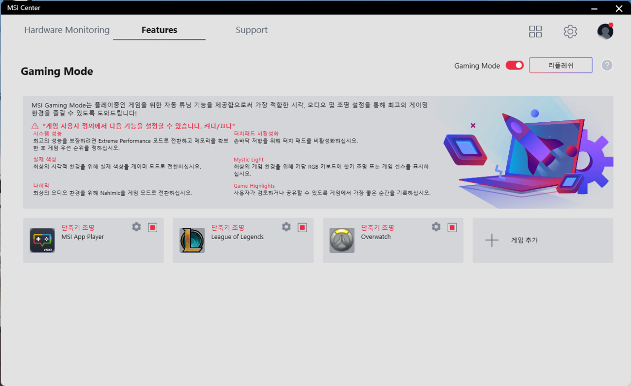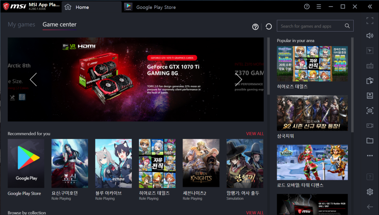 거기에 안드로이드 에뮬레이터인 MSI 앱 플레이어도 사용할 수 있다. 해당 프로그램을 통해 모바일 게임을 설치 후 실행할 수 있다.