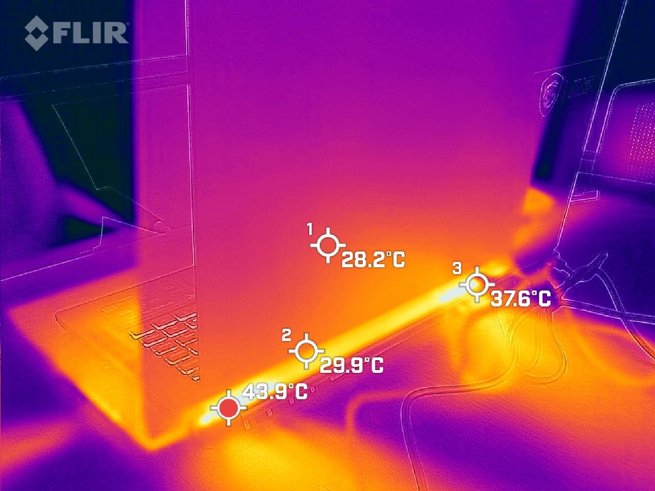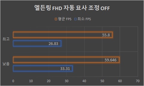 참고로 이는 쿨링팬을 최대로 구동한 상태다. 실질적으로 게임을 즐길 때에는 ‘극한의 성능’에서 자동 옵션을 적용하게 된다. 이때는 쿨러 부스트보다는 온도가 상승하지만, 소음은 크게 신경 쓰지 않아도 될 정도로 줄어든다. 소음은 평균 43.7도 정도다(조용한 도서관 수준). 노트북 온도는 키보드 상단부가 45.8도, 후면부가 51.9도로 상승한다.