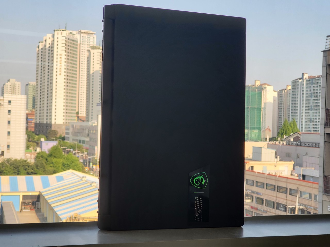 우선 디자인부터 확인해 보자. 스텔스 15M B12UE는 코어 블랙 색상의 게이밍 노트북이다. 무광 마감이며 상판에는 지문이 묻긴 하는데 잘 닦인다. 특히 상판의 MSI 로고가 새로워졌다. 중앙에서 우측 상단으로 배치가 변경됐다. 게이밍 노트북답게 드래곤 로고와 MSI 로고가 함께 있고, 두 로고는 빛의 굴절에 따라 색이 미묘하게 변한다. 단 부담스러울 정도로 눈에 띄거나 하지는 않는다. 드래곤 로고만 빼고 겉모습만 놓고 보면 비즈니스 노트북이라고 해도 믿을 정도다.