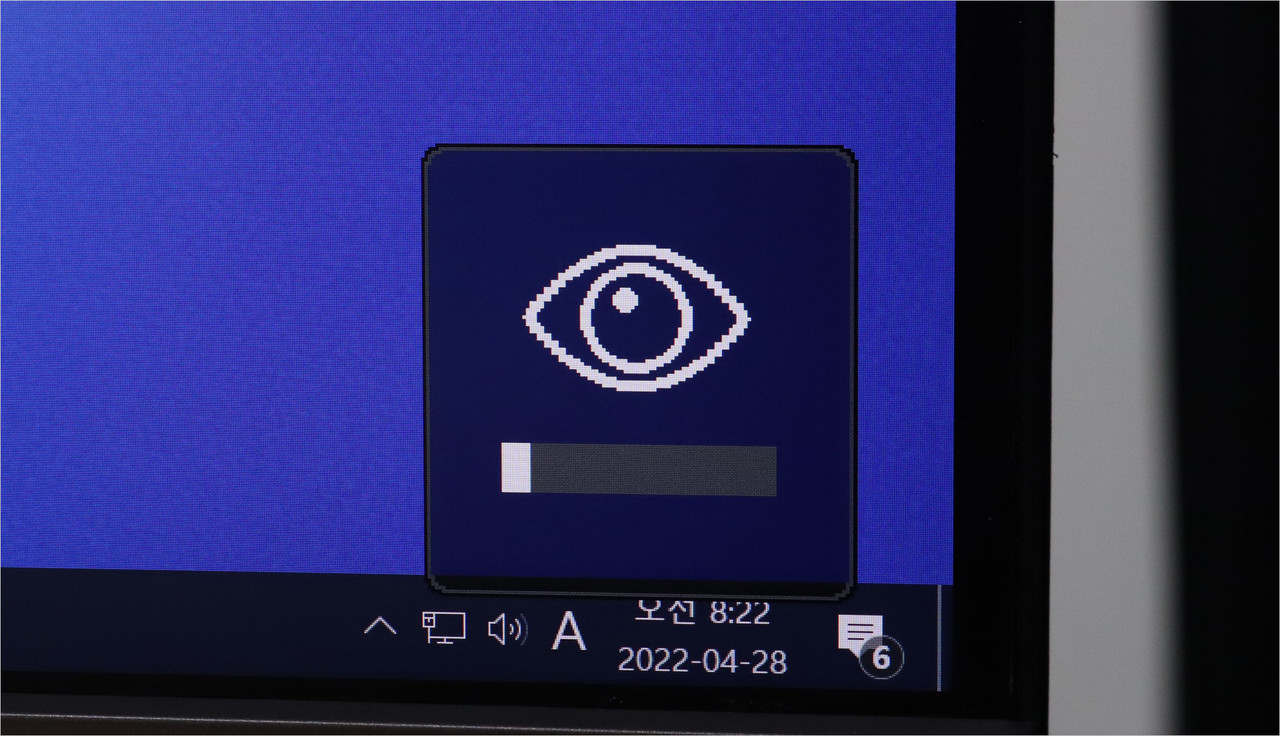 B.I.+ 센서는 주변 광량이 변화하는 경우 위 사진처럼 화면 한켠에 눈 모양 아이콘과 그래프를 띄우면서 작동한다. 센서가 감지하는 빛이 많을수록 막대 표시는 길어지고 적을수록 막대 표시는 짧아진다.