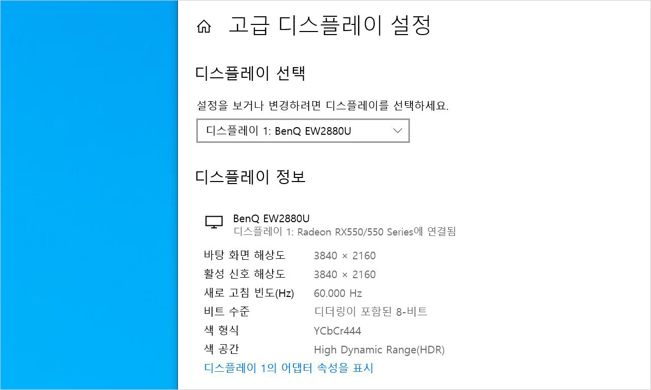 벤큐 EW2880U는 화면 속에서 밝은 부분은 밝게, 어두운 부분은 어둡게 표현하여 밝기를 실사에 가깝게 확장하는 기술인 HDR(High Dynamic Range)을 지원한다.