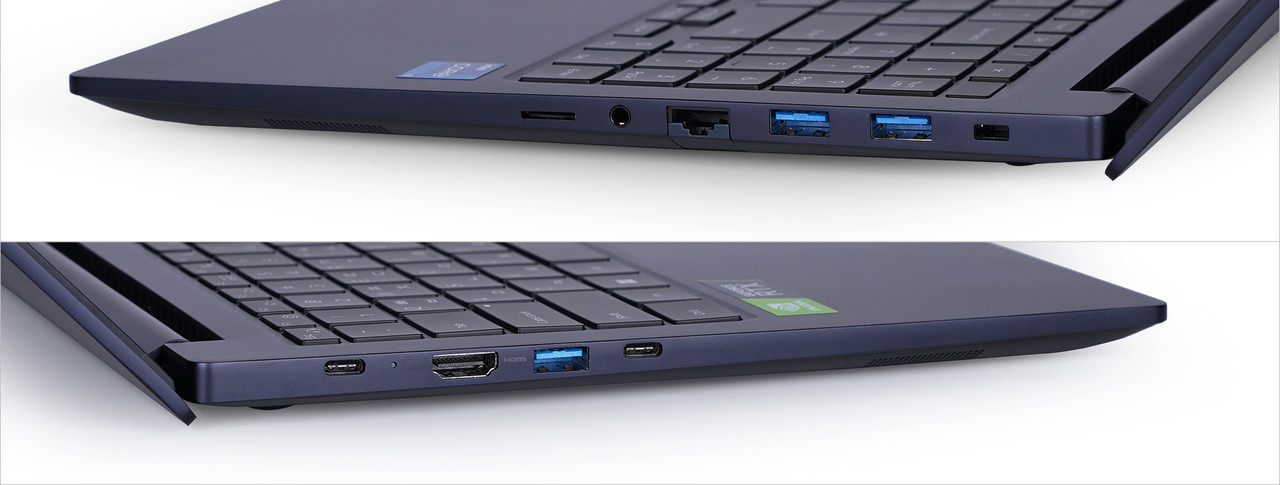포트 : HDMI x1, USB Type-C x2, USB 3.2 x3, MicroSD 멀티미디어 카드 리더, 헤드폰/마이크 콤보 x1, RJ45 x1, DC-in x1