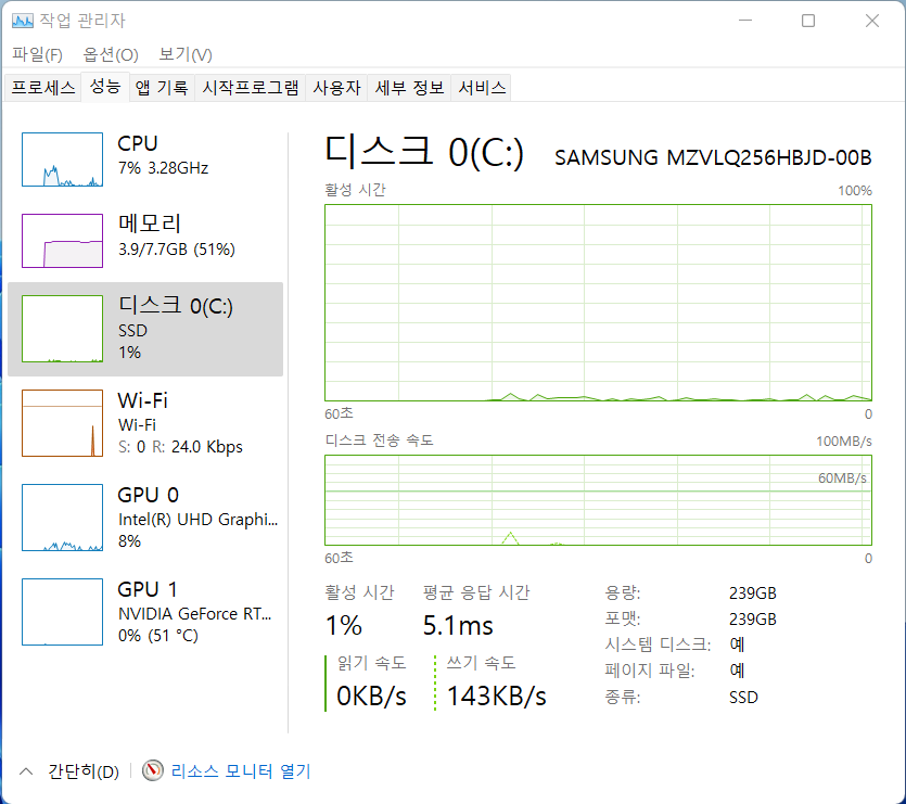 저장장치 : 256GB M.2 NVMe