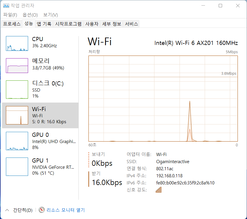 네트워크 : 블루투스 5.1, 와이파이 6(Gig+) 802.11 ax 2x2, 기가비트 이더넷
