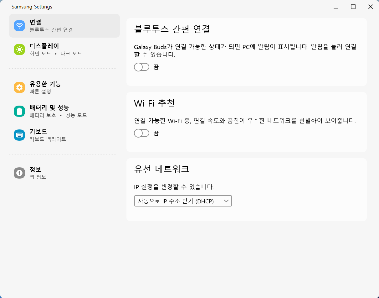 이외에도 갤럭시북답게 폰, 태블릿 등 갤럭시 기기 간 연동을 지원한다. 폰 및 태블릿의 파일을 공유하는 퀵 쉐어, 태블릿을 디스플레이로 사용하는 세컨드 스크린, 기존 노트북의 데이터를 간편하게 전송하는 갤럭시 북 스마트 스위치, 가전제품을 제어할 수 있는 스마트씽스 등을 사용할 수 있다. 갤럭시 버즈 등의 블루투스 이어폰과 연결도 쉽게 된다.