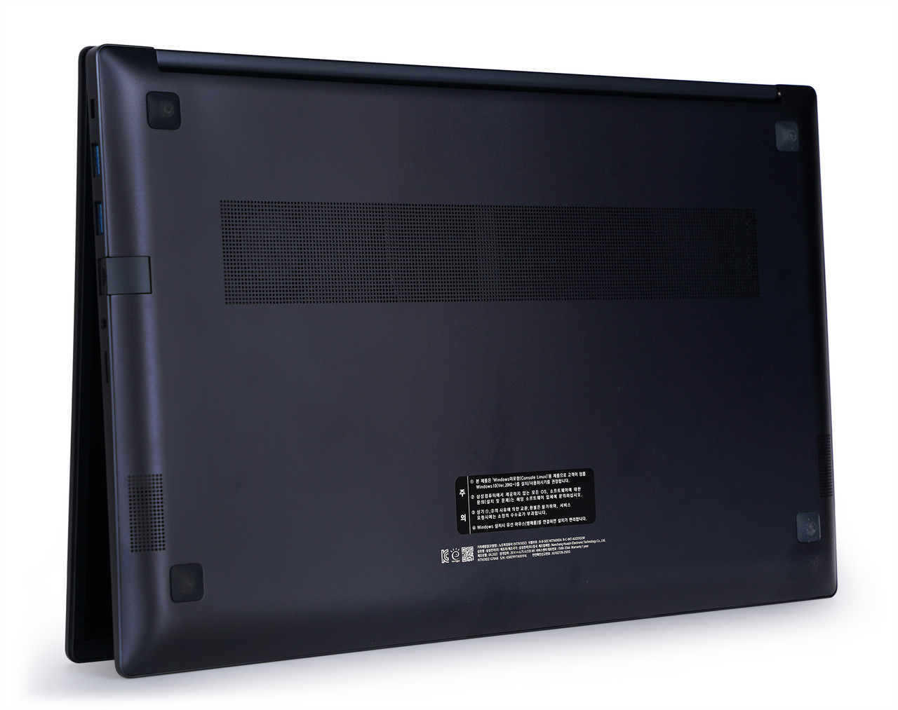 두께는 기존 갤럭시북이 15.4mm면 갤럭시북 NT761XDZ-G78A는 17.7mm로 고작 2.3mm 차이나는 정도다. 재질은 풀메탈답게 전원이 꺼진 상태에서 손을 대면 상당히 시원하다. 상판은 무광 색상이며, 지문은 묻긴 묻는데 잘 닦인다.