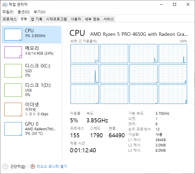 해당 프로그램을 라이젠 5 4650G 시스템(DDR4 3200MHz 8GB x2, 512GB SSD)에서 실행해 봤다. ASRock DeskMini A300 시스템에서 진행했는데, DeskMini X300 시스템과 크기는 거의 같다.