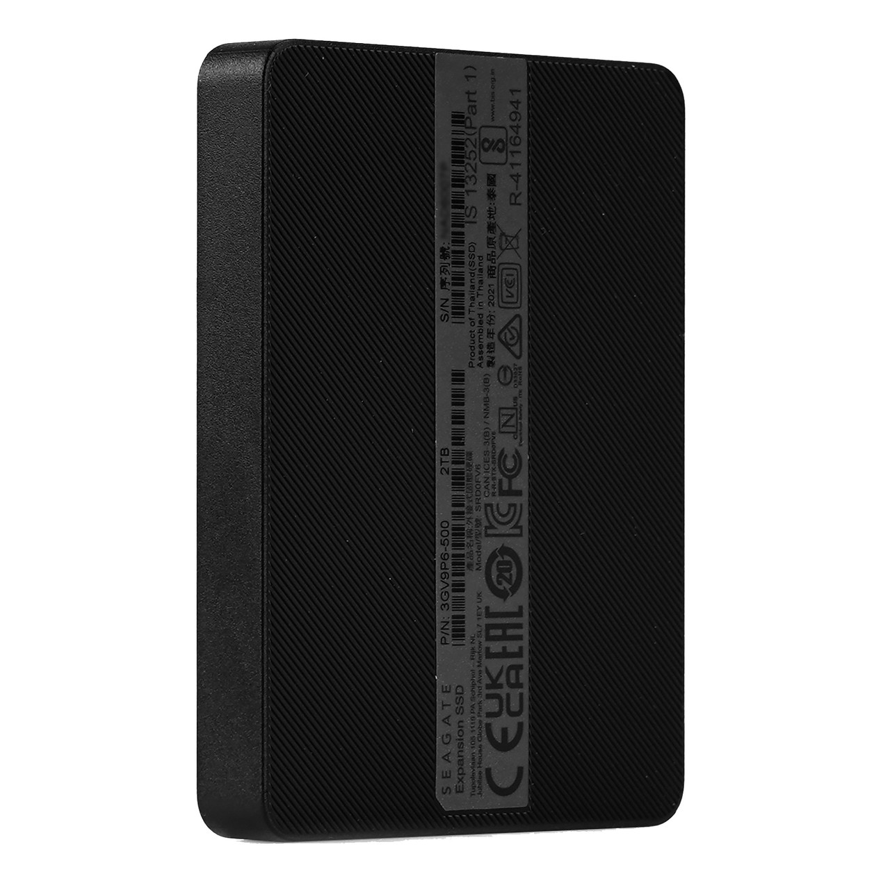 제품 색상은 검은색이고 표면에는 빗금 무늬가 있어서 외관을 고급스럽게 보이도록 만들어준다. 전면에는 씨게이트 로고가 있고 후면에는 간략한 제품 정보와 KC 인증을 비롯한 각종 인증 마크가 보인다. 따라서 주요 국가들의 전자기기 안전 기준을 충족하므로 국외에서도 안심하고 패스트 익스팬션 SSD를 사용 가능하다.