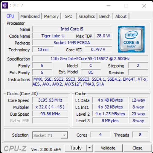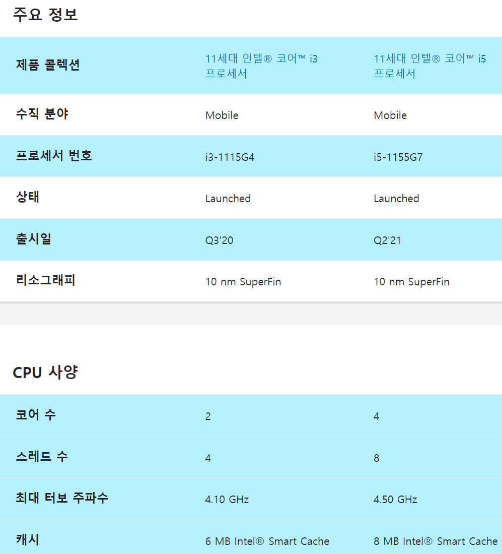 CPU : 인텔 코어 i5-1155G7(4코어 8스레드, 최대 4.5GHz, 8MB 캐시)