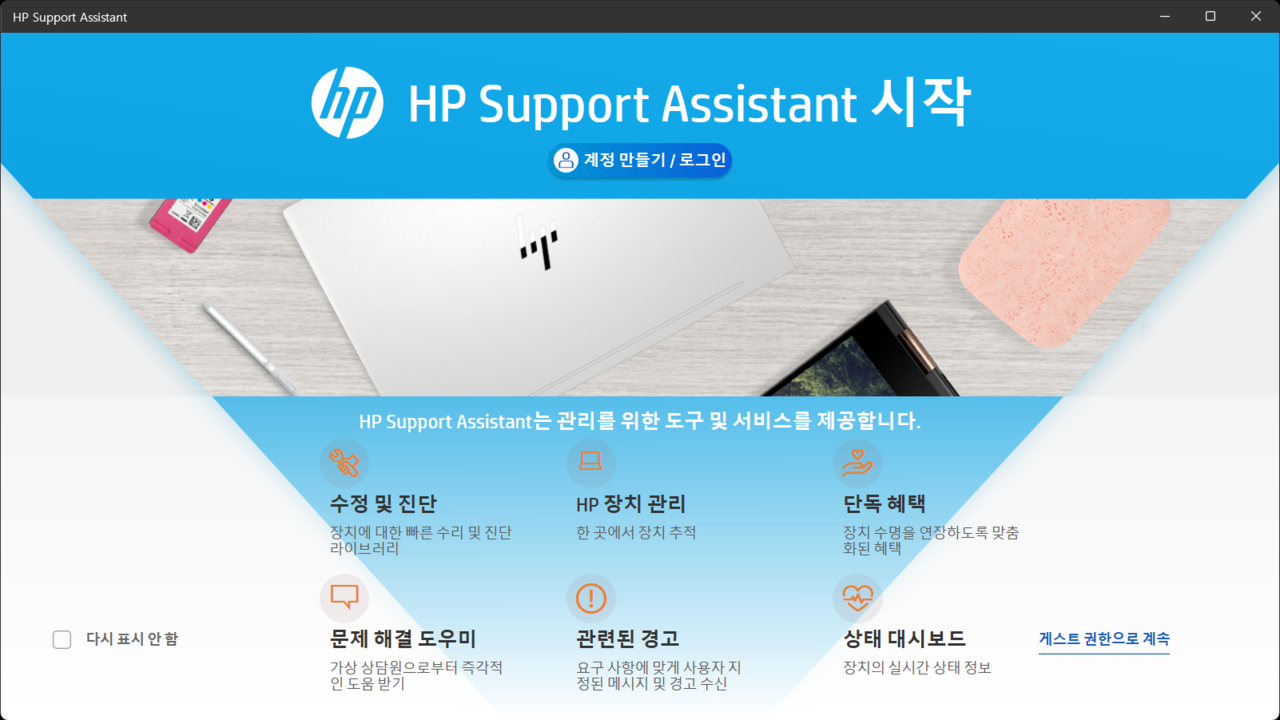 또한, 글로벌 기업 HP의 노트북답게 사후지원 프로그램이 잘 갖춰졌다. 아예 노트북에 ‘HP 고객지원’이라는 스티커가 붙어 있다. 해당 스티커에는 서비스 접수 과정이 단계별로 기재돼 알아보기 편하다.