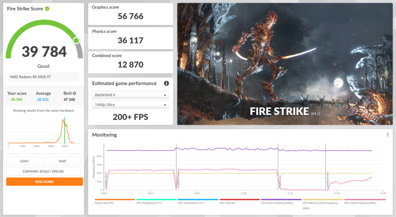 내장된 벤치마크로 평균 프레임을 측정했다. 우측 하단 ‘달성함’에 나오는 프레임이 아닌, GPU 평균 FPS로 기재한다.