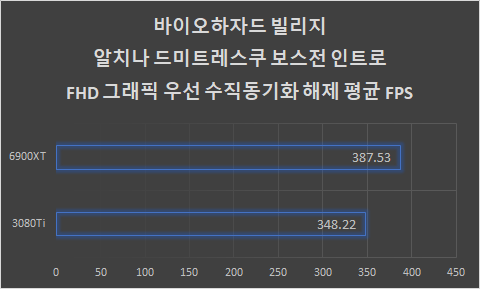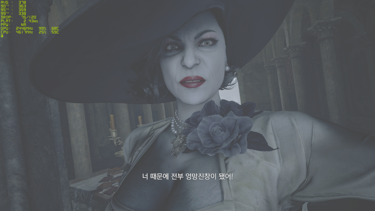 알치나 드미트레스쿠 인트로에서 Frameview를 사용해 평균 프레임을 측정했다. FHD 그래픽 우선 옵션에 수직 동기화는 해제한 상태다.