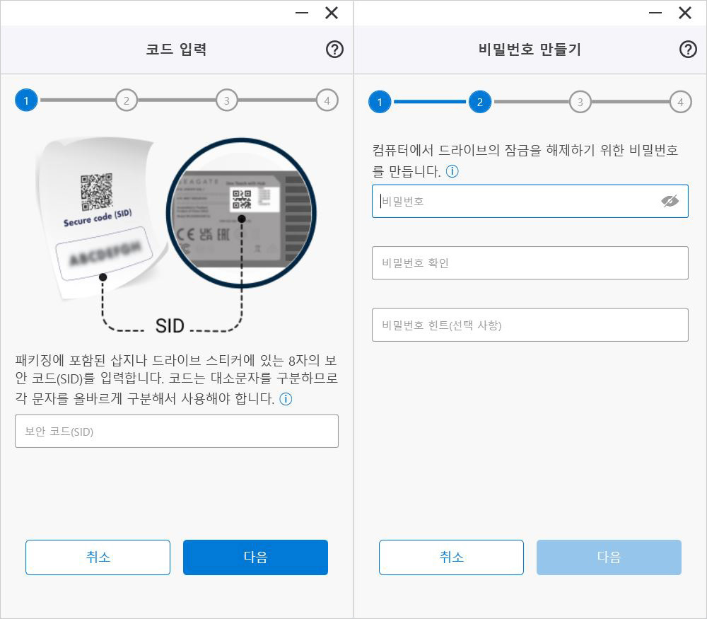 우선 SID 정보를 입력해야 한다. 씨게이트 원 터치 허브 하단에 부착된 스티커에 기재되어 있으니 참고해서 입력하면 된다. 두 번째는 ‘비밀번호 만들기’인데 숫자나 문자만 사용해도 설정은 가능하지만 그러면 보안 면에서 취약하므로 그 두 가지와 특수 기호를 함께 섞어서 만드는 것이 좋다.