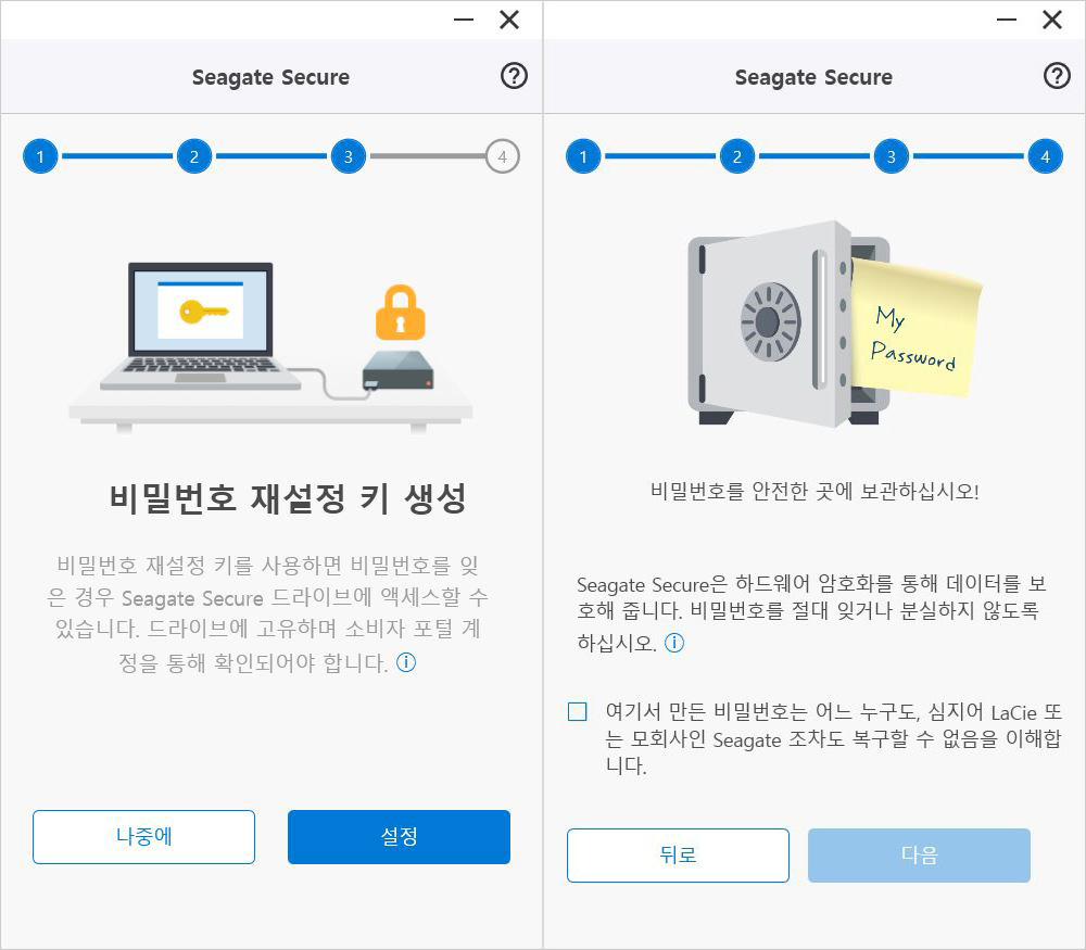 한편 씨게이트 시큐어를 통해 암호화시킨 드라이브는 비밀번호나 비밀번호 재설정 키가 없으면 사용자는 물론이고 제조사인 씨게이트도 데이터에 접근하지 못한다. 따라서 사용자가 설정한 비밀번호는 따로 용지에 기록해두고 안전한 장소에 보관할 필요가 있다.