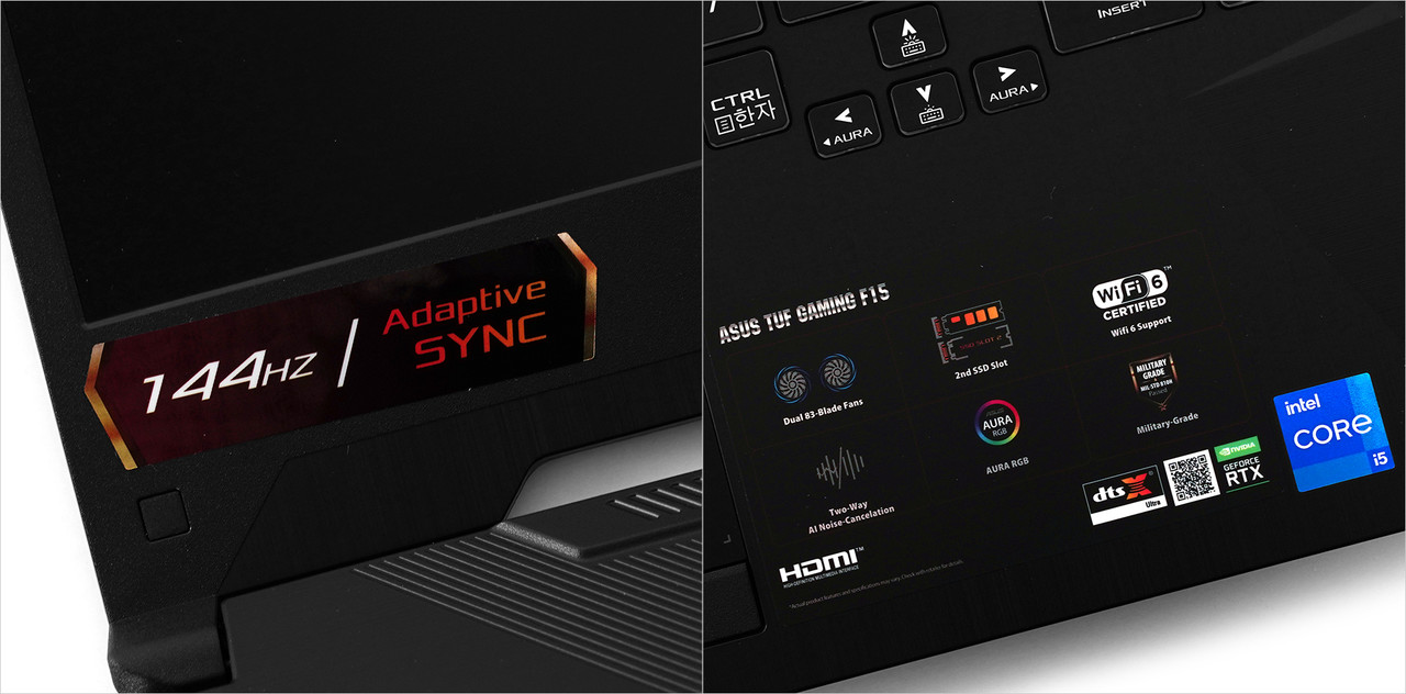 이번에 소개할 ASUS TUF Gaming F15 FX506HM-HN130(에이수스 터프 게이밍 F15 FX506HM-HN130, 이하 FX506HM)은 그런 터프의 장점이 잘 드러나는 메인스트림 게이밍 노트북이다. 11세대 인텔 코어 i5-11400H 프로세서, 엔비디아 지포스 RTX 3060 Laptop GPU GDDR6 6GB, DDR4 8GB 3200MHz, M.2 NVMe PCIe 3.0 SSD 512GB를 갖췄다. 15.6인치 화면에 1920x1080 FHD 해상도 및 144Hz 주사율, 밝기 250nits 및 sRGB 62.5%, 안티 글레어 디스플레이, 어댑티브 싱크, RGB 백라이트 키보드가 지원된다. 사양이 제법 괜찮다.