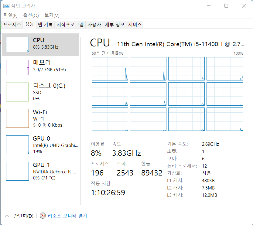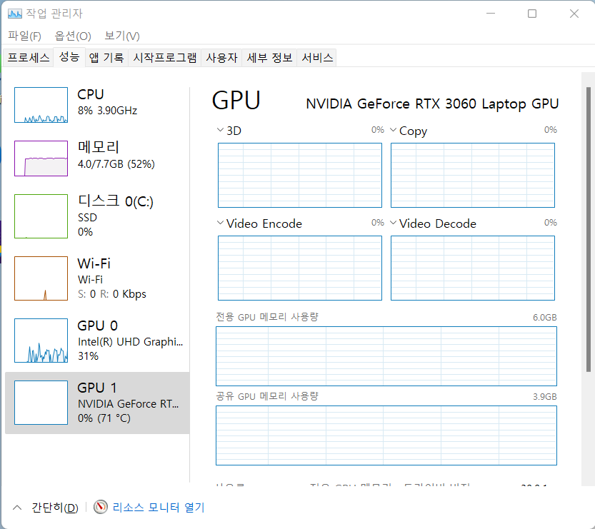 GPU : 엔비디아 지포스 RTX 3060 Laptop GPU